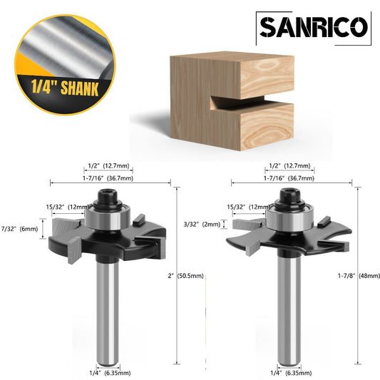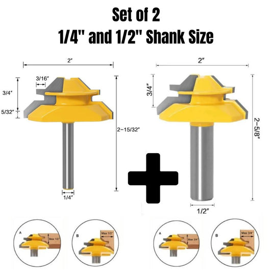 45-degree Lock Miter Router Bit Set (2 Pcs) - 1/4" + 1/2" Shank